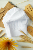 Koncepcja gotowania żywności z kapeluszem szefa kuchni, izolowane na białym tle