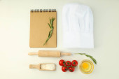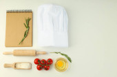 Koncepcja gotowania żywności z kapeluszem szefa kuchni, widok z góry