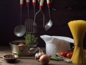 Koncepcja gotowania żywności z kapeluszem szefa kuchni, miejsce na tekst