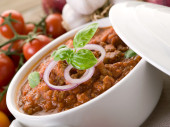 sosem mięsnym w misce
