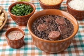 Zdjęcie "Tradycyjna brazylijska feijoada w misce nad drewnianym stołem." może być wykorzystywane do celów osobistych i komercyjnych zgodnie z warunkami zakupionej licencji Royalty-free. Obraz jest dostępny do pobrania w jakości wysokiej rozdzielczości do 5760x3840.