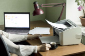Zdjęcie "Drukowanie dokumentów z komputera do drukarki" może być wykorzystywane do celów osobistych i komercyjnych zgodnie z warunkami zakupionej licencji Royalty-free. Obraz jest dostępny do pobrania w jakości wysokiej rozdzielczości do 5760x3840.