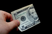 stos banknotów dolarowych, na białym tle na czarnym tle