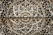 rzeźba w drewnie, wzór kwiatowy rzeźbiony na drewnianym tle. Żółwik