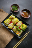 kapusta bułki nadziewane mięso lub kol gulung, kelem dolmasi, sarma Kapusta owinięta, Chou farci, golubtsy, golabki. gotowane liście kapusty zawinięte w mięso lub wołowinę.