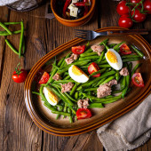 Sałatka z zielonej fasoli z jajkiem i tuńczykiem