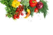 różne warzywa izolowane na białym tle. Koncepcja zdrowej żywności. Leżeć płasko. świeże warzywa, zioła i przyprawy. Surowe warzywa ekologiczne.