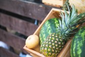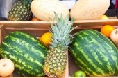 Zdrowe owoce i warzywa w sklepie spożywczym. Wegetariański supermarket spożywczy.