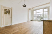 Okno z tworzywa sztucznego i grzejnik na białej ścianie w pustym pomieszczeniu oświetleniowym w domu