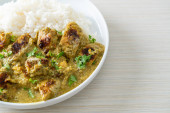Zdjęcie "Afgański kurczak w zielonym curry lub Hariyali tikka kurczaka hara masala z ryżem - azjatycki styl żywności" może być wykorzystywane do celów osobistych i komercyjnych zgodnie z warunkami zakupionej licencji Royalty-free. Obraz jest dostępny do pobrania w jakości wysokiej rozdzielczości do 5760x3840.