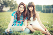 Zdjęcie "Siostry za pomocą tabletki i smartphone w parku" może być wykorzystywane do celów osobistych i komercyjnych zgodnie z warunkami zakupionej licencji Royalty-free. Obraz jest dostępny do pobrania w jakości wysokiej rozdzielczości do 5760x3840.
