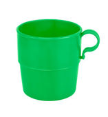 plastikowy kubek na białym tle biały ze ścieżką przycinającą.