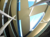 Architektoniczna złożona struktura, inżynieria budowlana. Widok na dach, architektura techniczna.