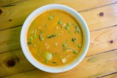 Pyszne kolorowe lokalne jedzenie jagnięcina Tripe zupa w restauracji. Tradycyjna kuchnia bułgarska w Bułgarii.