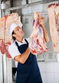 Zdjęcie "Szczęśliwa kobieta rzeźnik stojąc w rzeźni" może być wykorzystywane do celów osobistych i komercyjnych zgodnie z warunkami zakupionej licencji Royalty-free. Obraz jest dostępny do pobrania w jakości wysokiej rozdzielczości do 5760x3840.