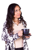 kobieta picia kawy stały