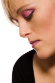 piękna blond dziewczyna z zamkniętymi oczami i piękny makijaż