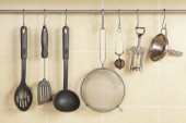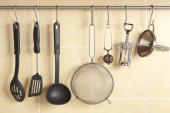 Zdjęcie "Akcesoria kuchenne wiszące na haki na ścianie" może być wykorzystywane do celów osobistych i komercyjnych zgodnie z warunkami zakupionej licencji Royalty-free. Obraz jest dostępny do pobrania w jakości wysokiej rozdzielczości do 5760x3840.