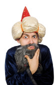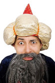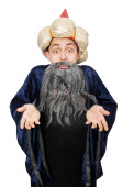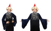 Zabawny mądry czarodziej odizolowany na białym