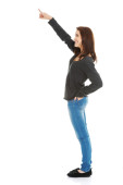 Zdjęcie "Widok z boku kobiety ucznia wskazując" może być wykorzystywane do celów osobistych i komercyjnych zgodnie z warunkami zakupionej licencji Royalty-free. Obraz jest dostępny do pobrania w jakości wysokiej rozdzielczości do 5760x3840.