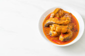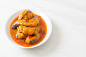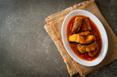 Redtail Ryby sum w suchym sosie curry czerwony, który nazywa Choo Chee lub król curry gotowane z ryb serwowane z pikantnym sosem