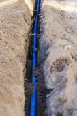 Zdjęcie "Zbliżenie podziemnego systemu nawadniania, instalacja kanalizacji wodnej. Rury mocujące łokieć i pvc na zakręcie w okopach brudu na zewnątrz" może być wykorzystywane do celów osobistych i komercyjnych zgodnie z warunkami zakupionej licencji Royalty-free. Obraz jest dostępny do pobrania w jakości wysokiej rozdzielczości do 5760x3840.