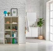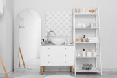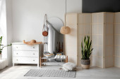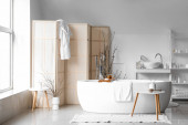 Zdjęcie "Wnętrze nowoczesnej łazienki ze składanym ekranem" może być wykorzystywane do celów osobistych i komercyjnych zgodnie z warunkami zakupionej licencji Royalty-free. Obraz jest dostępny do pobrania w jakości wysokiej rozdzielczości do 5760x3840.