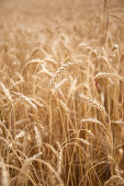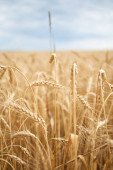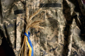 Ukraiński wojskowy na polu pszenicy. Ukraińskie pola pszenicy i zbliżający się kryzys żywnościowy. Siły zbrojne Ukrainy