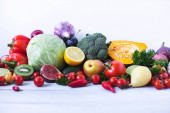 Zdjęcie "Plate of different vegetables and fruits on a light background" może być wykorzystywane do celów osobistych i komercyjnych zgodnie z warunkami zakupionej licencji Royalty-free. Obraz jest dostępny do pobrania w jakości wysokiej rozdzielczości do 5760x3840.