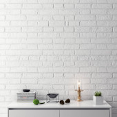 Blank ściana makieta w tle wnętrza domu, biały pokój z naturalnymi drewnianymi meblami, styl Scandi-Boho, 3d renderowania