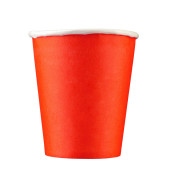 Orange Plastic Cup isolated on white background, full depth of field. Cups for beer. Design element. File contains clipping path.