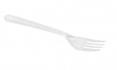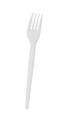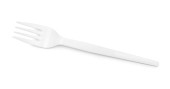 Disposable plastic fork isolated on white background, full depth of field. Design element. File contains clipping path.