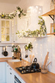Zdjęcie "Jesienne wnętrze kuchni. Czerwone i żółte liście i kwiaty w wazonie i dynia na białym tle." może być wykorzystywane do celów osobistych i komercyjnych zgodnie z warunkami zakupionej licencji Royalty-free. Obraz jest dostępny do pobrania w jakości wysokiej rozdzielczości do 5760x3840.