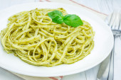 Zdjęcie "Spaghetti w sosie pesto" może być wykorzystywane do celów osobistych i komercyjnych zgodnie z warunkami zakupionej licencji Royalty-free. Obraz jest dostępny do pobrania w jakości wysokiej rozdzielczości do 5760x3840.