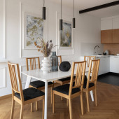 Zdjęcie "Simple and minimalist kitchen interior with dark tiled floor, white cupboards and drawers and wooden wall" może być wykorzystywane do celów osobistych i komercyjnych zgodnie z warunkami zakupionej licencji Royalty-free. Obraz jest dostępny do pobrania w jakości wysokiej rozdzielczości do 5760x3840.
