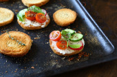 Zdjęcie "Pyszne bruschetta z warzywami" może być wykorzystywane do celów osobistych i komercyjnych zgodnie z warunkami zakupionej licencji Royalty-free. Obraz jest dostępny do pobrania w jakości wysokiej rozdzielczości do 5760x3840.