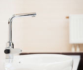 Zbliżenie faucet zaopatrzenia w wodę w nowoczesne łazienki