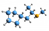 3D image of Methylhexanamine skeletal formula - molecular chemical structure of sympathomimetic drug isolated on white background