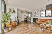 Zdjęcie "Liczniki z kuchenką i piekarnikiem znajduje się w nowoczesnej kuchni w pobliżu jadalni w domu" może być wykorzystywane do celów osobistych i komercyjnych zgodnie z warunkami zakupionej licencji Royalty-free. Obraz jest dostępny do pobrania w jakości wysokiej rozdzielczości do 5760x3840.