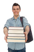 Zdjęcie "młody człowiek posiadający stos książek" może być wykorzystywane do celów osobistych i komercyjnych zgodnie z warunkami zakupionej licencji Royalty-free. Obraz jest dostępny do pobrania w jakości wysokiej rozdzielczości do 5760x3840.