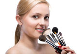 Zdjęcie "młoda kobieta z tworzą szczotki na białym tle" może być wykorzystywane do celów osobistych i komercyjnych zgodnie z warunkami zakupionej licencji Royalty-free. Obraz jest dostępny do pobrania w jakości wysokiej rozdzielczości do 5760x3840.