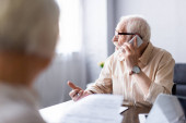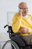 Zdjęcie "High angle view of displeased pensioner talking on smartphone in wheelchair at home " może być wykorzystywane do celów osobistych i komercyjnych zgodnie z warunkami zakupionej licencji Royalty-free. Obraz jest dostępny do pobrania w jakości wysokiej rozdzielczości do 5760x3840.