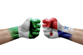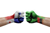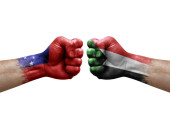 Zdjęcie "Two hands punch to each others on white background. Country flags painted fists, conflict crisis concept between bangladesh and chile" może być wykorzystywane do celów osobistych i komercyjnych zgodnie z warunkami zakupionej licencji Royalty-free. Obraz jest dostępny do pobrania w jakości wysokiej rozdzielczości do 5760x3840.