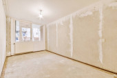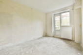Okno z tworzywa sztucznego i grzejnik na białej ścianie w pustym pomieszczeniu oświetleniowym w domu