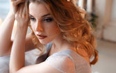 Piękna panna młoda blondynka z doskonały makijaż i włosy styl w eleganckie wnętrza