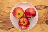 Zdjęcie "Four juicy pears with a white ceramic plate on a wooden table, close-up, top view." może być wykorzystywane do celów osobistych i komercyjnych zgodnie z warunkami zakupionej licencji Royalty-free. Obraz jest dostępny do pobrania w jakości wysokiej rozdzielczości do 5760x3840.