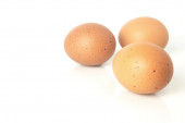 Fresh eggs are isolated on white background. Chicken eggs are rich in protein, vitamins, and essential minerals that are beneficial to the body.