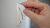 Hand approaching a card to an rfid reader to open a security door. High quality photo