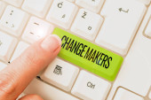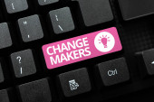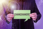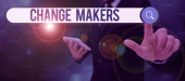 Text caption presenting Change Makers, Conceptual photo Young Turk Influencers Acitivists Urbanization Fashion Gen X Man Holding Tablet With Late Data And S Over And Presenting New Ideas.
