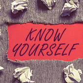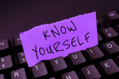Zdjęcie "Text sign showing Know Yourself, Concept meaning Find You Understanding Strength and Weaknesses Identity Important Informations Written On Piece Of Wood On Floor." może być wykorzystywane do celów osobistych i komercyjnych zgodnie z warunkami zakupionej licencji Royalty-free. Obraz jest dostępny do pobrania w jakości wysokiej rozdzielczości do 5760x3840.